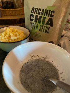 Iniziamo mettendo i semi di chia in ammollo una mezz’ora nei 3 cucchiai di acqua. Tagliamo una mela e mezza sbucciate a dadini e l’altra metà a fettine sottili. Setacciamo tutti gli ingredienti granulari e portiamo il forno alla temperatura di 180° in modalità statica sopra e sotto. Una volta che i semi di chia avranno riposato il tempo indicato aggiungete un goccio di latte preso dal totale e mischiate per bene rendendolo cremoso. [come nella foto di seguito].
